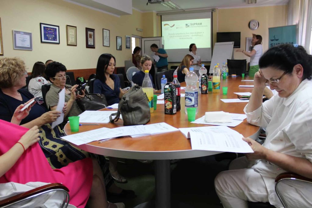 У организацији Удружења правника за медицинско право – СУПРАМ, уз подршку Немачке развојне агенције ГИЗ, одржана је едукација Роми као вулнерабилна група – приступи и недискриминација, која је акредитована од Здравственог савета и прихваћена као едукација из другог система у Комори социјалне заштите. Едукација је намењена запосленима у систему здравствене и социјалне заштите у циљу јачања капацитета за унапређење пракси и поступања према Ромима заснованим на антидисриминационим принципима. Поред предавања и дискусија са запосленима у сектору здравства и социјалне заштите, предвиђено је и пружање подршке институцијама кроз пружање одговора на питања заштите људских права и спречавања дискриминације која се јављају у пракси.